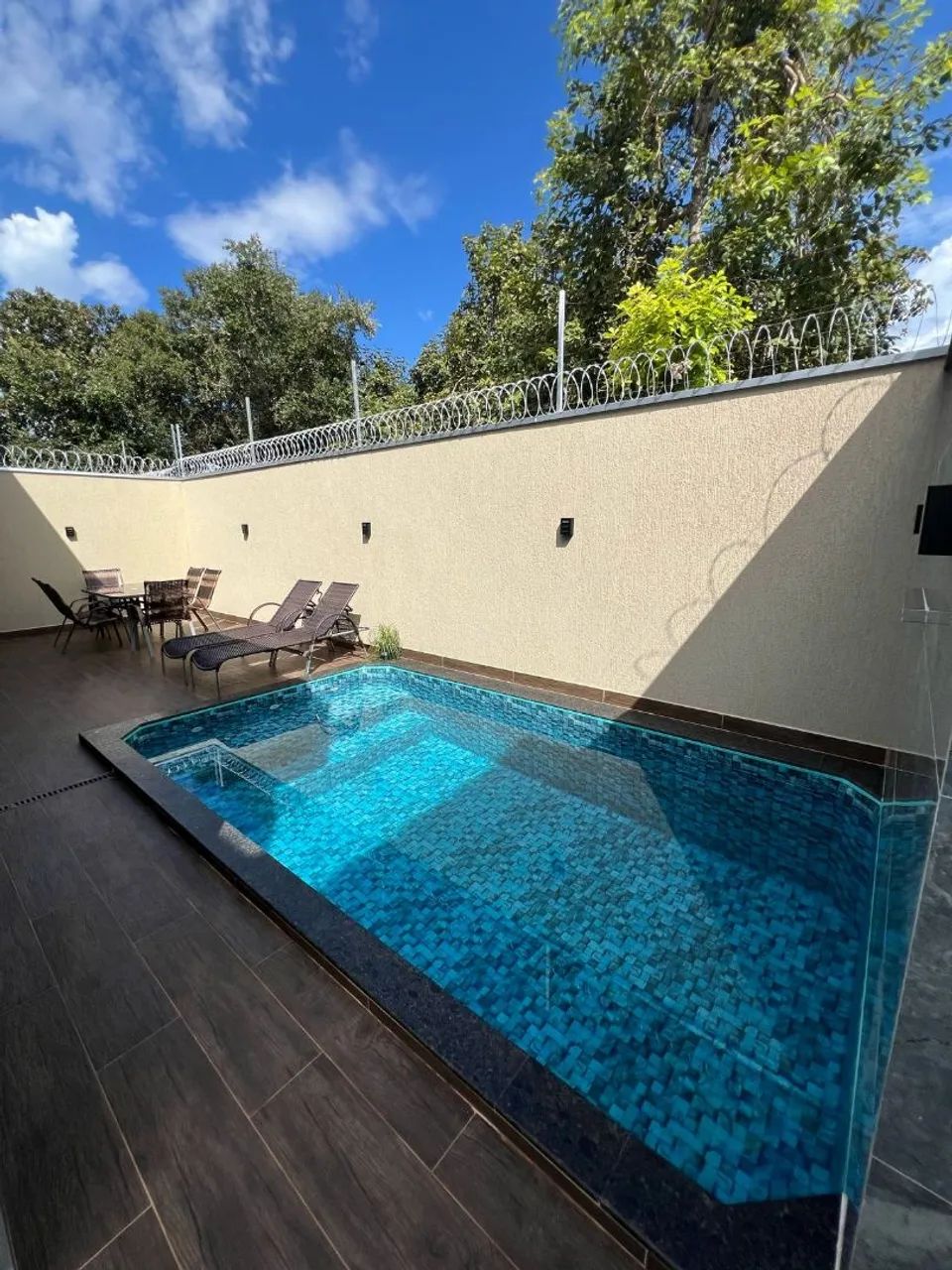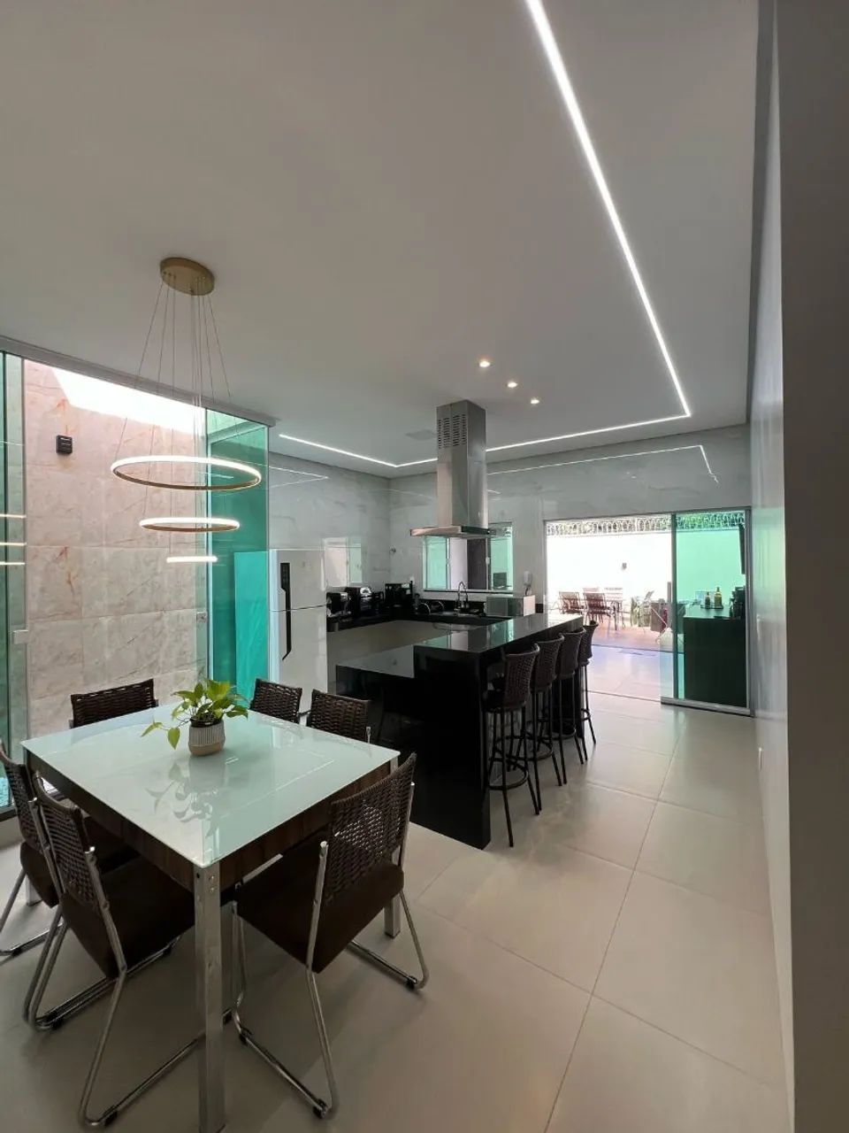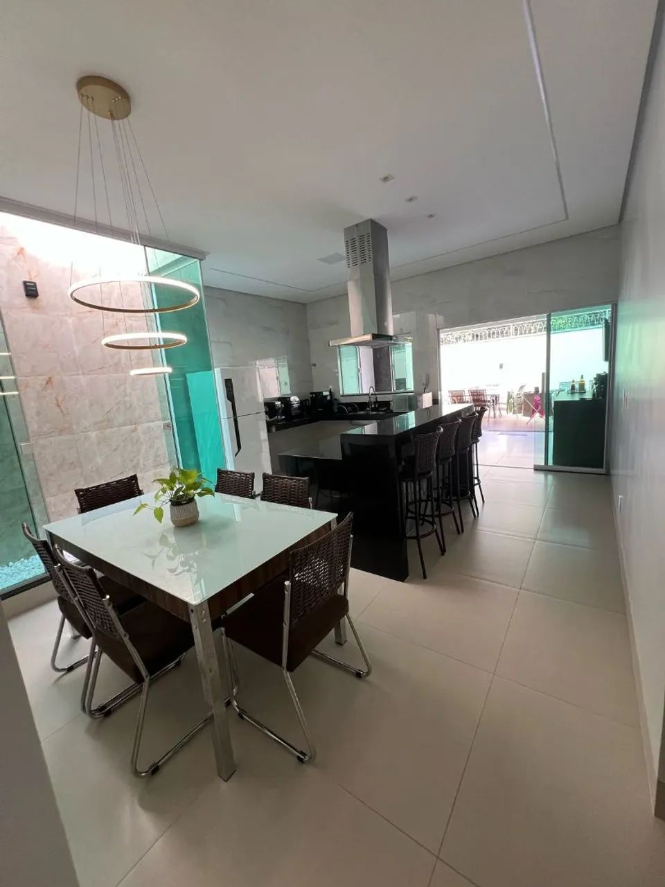 ?A cozinha é um espetáculo à parte: integrada e moderna, conta com ilha central, fogão de indução e coifa, conectando-se perfeitamente à área gourmet. O lazer é completo, com uma piscina privativa equipada com cascata e hidromassagem, ideal para momentos inesquecíveis.
